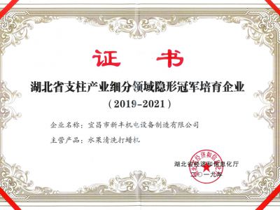湖北省支柱產業細分領域隱形冠軍培育企業