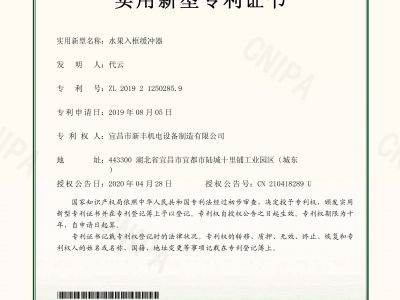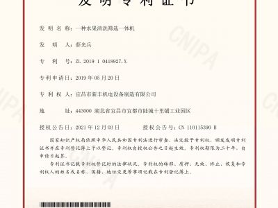 實用新型專利證書《一種防卡堵果蔬篩選機構》