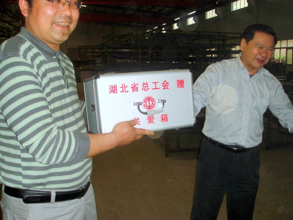 4月23日下午,宜昌市委常委、市總工會主席劉學甫在宜都市委副書記、市長羅聯峰,市委常委、市委宣傳部長、市總工會主席王世斌的陪同下,到宜昌市新豐機電設備制造有限公司生產一線慰問困難職工陳鳳友,與他親切交談,詳細詢問了陳鳳友的身體情況、工作情況及家庭情況,送去慰問金500元。并代表湖北省總工會、宜昌市總工會到生產一線為職工贈送“關愛箱”。 …