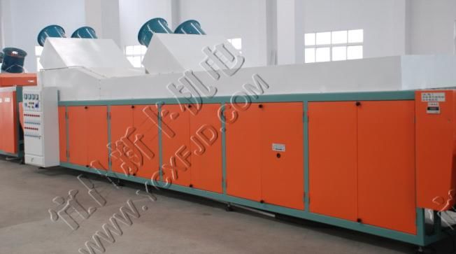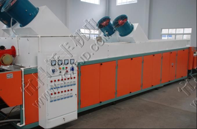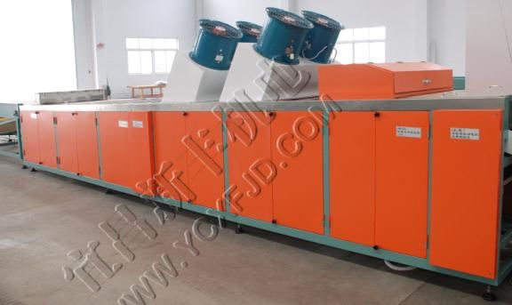熱風機換能器單獨布置,提高熱效率,經(jīng)干燥后的熱風經(jīng)過風機加速直接送進干燥道,通道內(nèi)空氣濕度低于25%,溫度不均勻度不超過±2℃。柴油燃燒機采用意大利產(chǎn)品,提高了干燥系統(tǒng)運行的可靠性。采用高穩(wěn)定性的溫度控制器和傳感器,克服了普通控制器不穩(wěn)定帶來的溫度慣性和漂移,最終使干燥道溫度恒定在設定范圍內(nèi)(建議設定值:上限為30℃,下限為26℃)。
