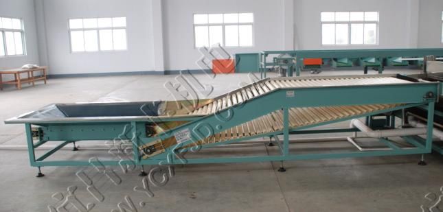提升和預選平臺:提升斜工作面是使水果在進入預選平臺前均勻平鋪,人工預選平臺的輸送管在運行的過程中帶動水果不斷旋轉(zhuǎn),增加可視性。