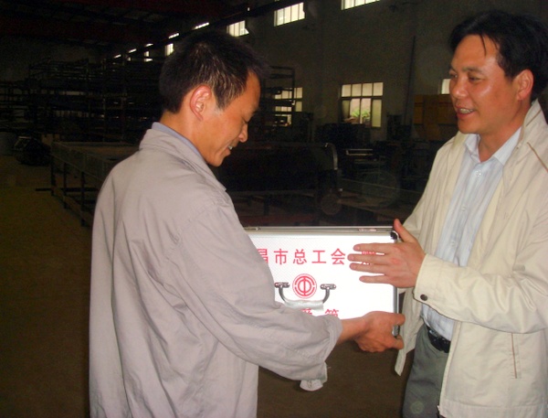 4月23日下午,宜昌市委常委、市總工會(huì)主席劉學(xué)甫在宜都市委副書記、市長羅聯(lián)峰,市委常委、市委宣傳部長、市總工會(huì)主席王世斌的陪同下,到宜昌市新豐機(jī)電設(shè)備制造有限公司生產(chǎn)一線慰問困難職工陳鳳友,與他親切交談,詳細(xì)詢問了陳鳳友的身體情況、工作情況及家庭情況,送去慰問金500元。并代表湖北省總工會(huì)、宜昌市總工會(huì)到生產(chǎn)一線為職工贈(zèng)送“關(guān)愛箱”。